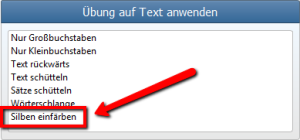 Ein Klick auf den Listeneintrag namens "Silben einfärben" färbt den kompletten Text im Textfeld anhand der Sprechsilben ein. Falls zuvor nur ein Teil des Textes ausgewählt wurde, dann wird auch nur dieser Teil eingefärbt.