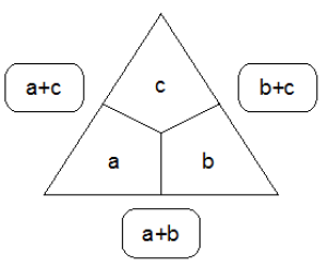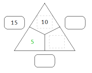 Das Feld für Rechendreiecke im Worksheet Crafter unterstützt sowohl Addition- als auch Multiplikations-Aufgaben. Bei Multiplikations-Aufgaben wird in der Mitte zusätzlich ein Mal-Zeichen dargestellt, um die Tatsache der Multiplikation zu verdeutlichen. Hier ist ein kleines Beispiel für eine Additionsaufgabe: