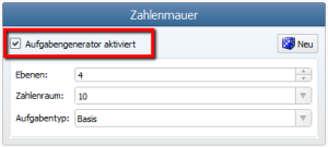Der Worksheet Crafter aktiviert standardmäßig für alle Aufgabenfelder den Aufgabengenerator. Das hat den großen Vorteil, dass die Aufgaben anhand Ihrer Einstellungen mitsamt Lösungen automatisch berechnet werden. In manchen Fällen ist es jedoch sinnvoll und notwendig, Aufgaben selbst mit Zahlen zu füllen. Entfernt hierzu einfach bei den Eigenschaften des Feldes das Häkchen bei "Aufgabengenerator aktiviert":