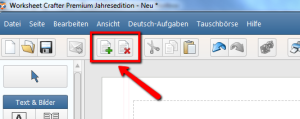 Auch wenn der Worksheet Crafter standardmäßig nur eine Seite anlegt, könnt ihr sehr einfach weitere Seiten hinzufügen und somit mehrseitige Arbeitsblätter erstellen. Klickt hierzu auf den entsprechenden Button in der oberen Funktionsleiste oder alternativ dazu im Menü "Seite" auf den Menüpunkt "Neue Seite hinzufügen":