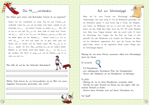 Auf zur Schnitzeljagd (S.30) erzählt von Adams Vorbereitungen für seine geplante Schnitzeljagd. Danach seid ihr dran: In Partnerarbeit entwerfen die Kinder eine eigene Schnitzeljagd-Route durch eure Schule. Dabei malen sie eine Schatzkarte und überlegen sich für jeden Punkt eurer Route ein Rätsel, das zum nächsten Versteck führt. Zum Schluss zeichnet ihr eure Verstecke auf der Schatzkarte ein.