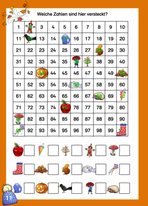 Auf Seite 11 haben sich in manchen Kästchen unseres 100er-Feldes ein paar Bilder eingemogelt. Finden eurer SchülerInnen heraus, welche Zahlen hier anstatt der Bilder stehen sollten und können sie die auch richtig aufschreiben?