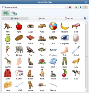 Die Pakete sind dabei nach keinem speziellen Kriterium aufgeteilt – später könnt ihr euch alle Grundwortschatzbilder auf einmal anzeigen lassen, indem ihr in der Suche „Grundwortschatz“ oder auch "NRW Grundwortschatz" eingebt.