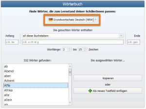 Zum anderen findet ihr im Wörterbuch des Worksheet Crafter seit der Version 2019.2 eine eigene Kategorie Grundwortschatz Deutsch (NRW).