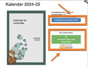 Auch für die Analogen unter euch, die einen Kalender am liebsten mit Füller & Tinte führen, haben wir etwas. Denn ihr könnt auch eine Version 24/25 zum Ausdrucken wählen – im Copyshop erhaltet ihr dann ganz einfach euer fertiges Produkt. Unsere Printversion könnt ihr sowohl als veränderbare Worksheet Crafter-Datei als auch als PDF herunterladen. Wählt einfach den für euch passenden Button (s. Bild).