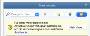 Dann weist euch unser Programm beim nächsten Neustart in der Materialsuche darauf hin, dass es ein verfügbares Update gibt.
