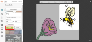 Gerade, wenn ihr mehrere Bilder kombinieren wollt, ist es sehr nützlich, wenn der Hintergrund transparent ist. Bei einem weißen Hintergrund wie bei unserem Bienenbild geht das sogar direkt im Worksheet Crafter. Dafür müsst ihr nur das Bild in den Worksheet Crafter Cliparts laden: