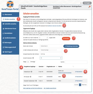 Zur Verwaltung der Schulen brauchst du Adminrechte für das Kund*innen-Portal deiner Schullizenz.