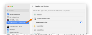 Bitte prüfe im Abschnitt Datenschutz und Sicherheit der Systemeinstellungen unter Dateien und Ordner die Zugriffsrechte des Installationsprogramms. Wird es dort genannt, dann erlaube ihm auf deinen Download-Ordner zuzugreifen.