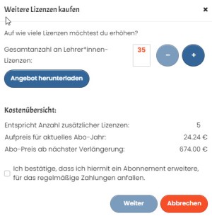 Schulabo: Wie kann ich das Schulabo erweitern? (Lizenzen hinzukaufen)