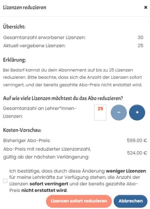Schulabo: Wie kann ich Lizenzen reduzieren?