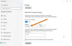 Es öffnen sich die gerade aktiven Netzwerkeinstellungen im Bereich Proxies.