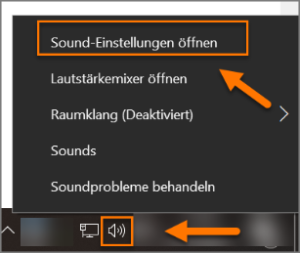 Mache einen Rechtsklick auf das Lautsprecher-Symbol unten rechts in der Taskleiste und klicke auf :