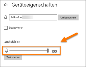 Jetzt öffnet sich ein Fenster, in dem du die Lautstärke des Mikrofons (d.h. die Mikrofonempfindlichkeit) einstellen kannst:
