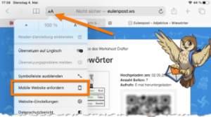 Auf iPads kann das in einem kleinen Menü mit dem Doppel-A-Symbol in der Adresszeile eingestellt werden.