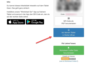 Den selben Link kannst du auch an deine Kolleg*innen weitergeben. Die können das Arbeitsblatt dann kurz selber auf ihrem Tablet testen. Und sie können es auch als Worksheet Crafter Dokument laden und selber weiter bearbeiten.