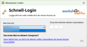 Der Worksheet Crafter bietet seit Version 2020.1 unter Windows zwei Möglichkeiten zur Speicherung der Lizenzdaten. Wenn du das Programm startest, und der Worksheet Crafter nach den Lizenzdaten fragt, wird am unteren Rand des Fensters die Art der Datenspeicherung beschrieben: