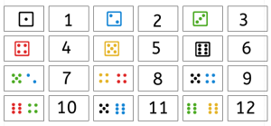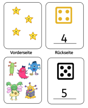Entsprechend sind die Würfelbilder aus unserem Paket toll für die strukturierte Darstellung einer Menge. So üben eure SchülerInnen ganz leicht die Verarbeitungsgeschwindigkeit für Zahleninformationen. Natürlich könnt ihr die Würfel auch zur Übung für die simultane Mengenerfassung einsetzen.