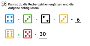 Wenn eure Klasse schon sicher im Umgang mit dem Zahlensystem ist, sind die bunten Würfelsymbole auch toll, um Mathe- oder Knobelaufgaben zu erstellen.