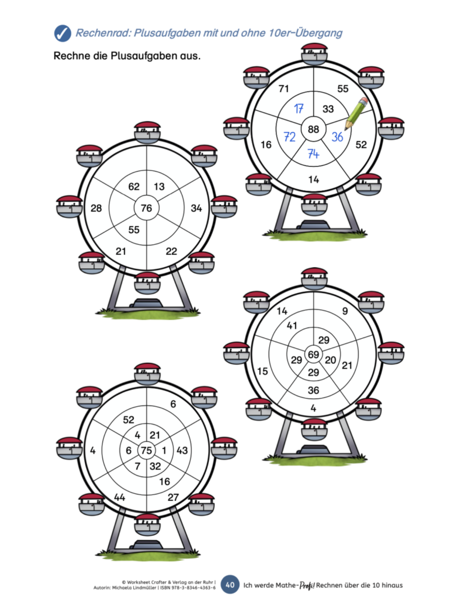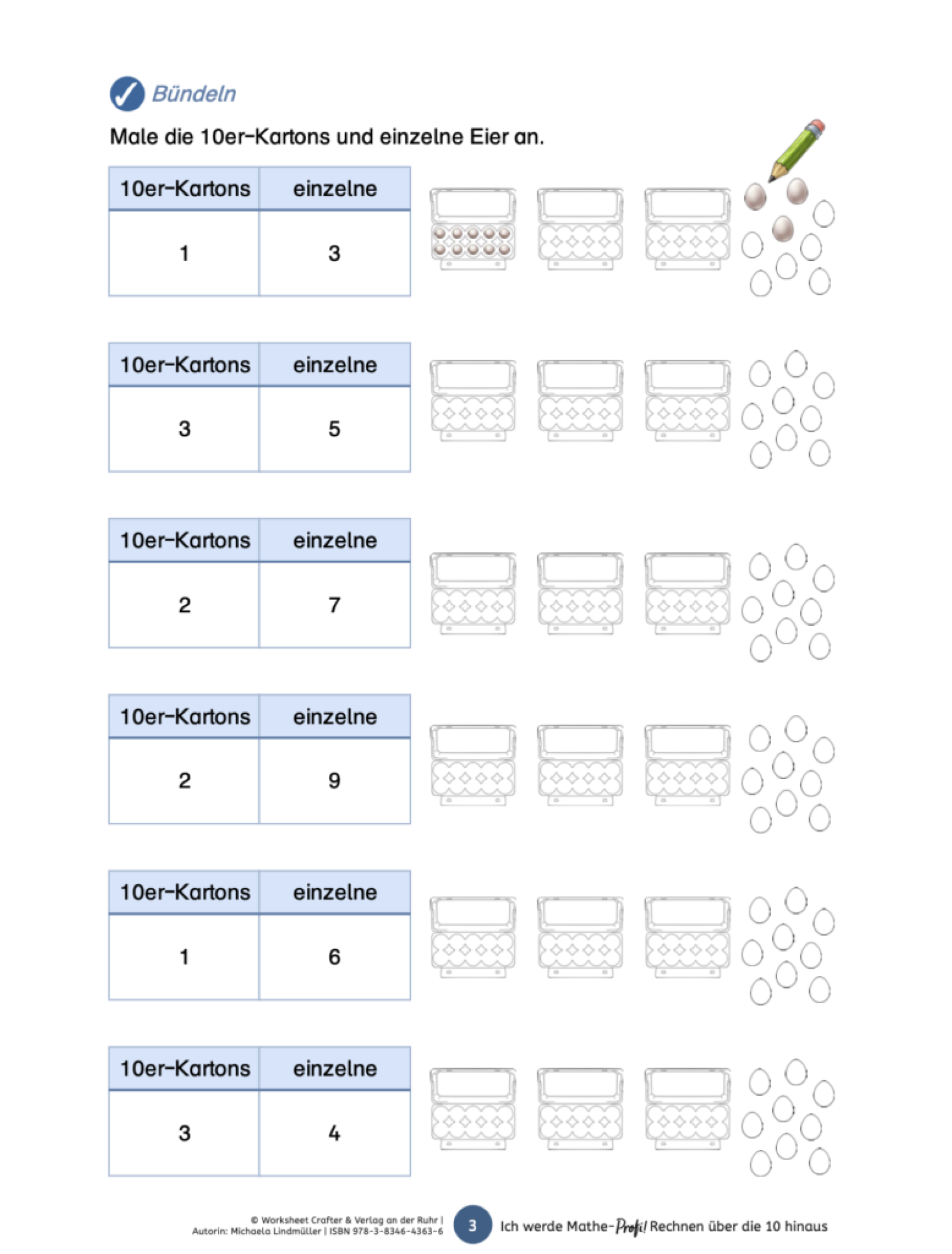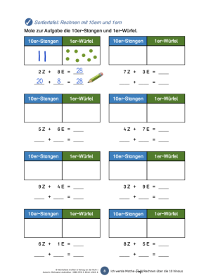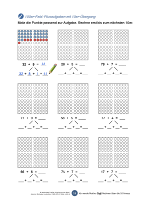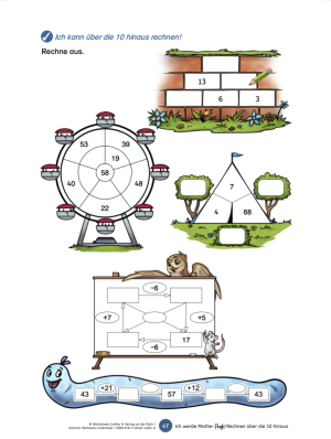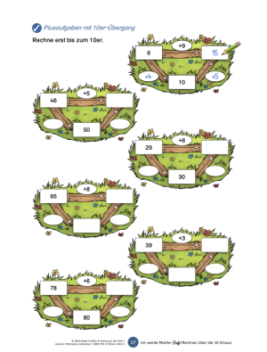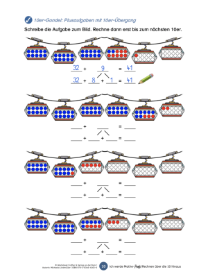 Die Autorin Michaela Lindmüller hat ein 48-seitiges Arbeitsheft mit vielseitigen Übungen gezaubert, mit dem eure Klasse das Rechnen über die 10 hinaus trainiert.