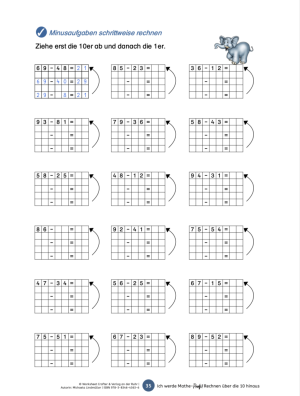 Neben vielseitigen Übungen zum Bündeln und den Stellenwerten trainieren eure Kids mit dem Mathe-Profi halbschriftliches Rechnen sowohl schritt- als auch stellenweise. Und natürlich gibt es viele tolle Aufgabenformate rund um das Verringern und Ergänzen bis zum nächsten 10er.
