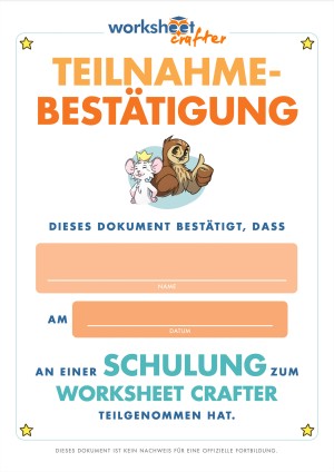 Planst du eine Worksheet Crafter Schulung für dein Kollegium? Dann kannst du hier personalisierbare Urkunden für die Teilnehmer*innen herunterladen. (Diese Dokumente sind allerdings kein offizieller Fortbildungsnachweis).
