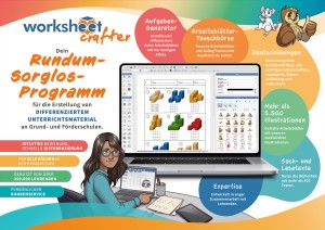Zweiseitiges Dokument mit übersichtlichen Informationen und Bildern zum Worksheet Crafter.