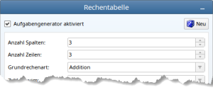 Legt dafür zunächst rechts bei den Eigenschaften des Aufgabenfeldes ein paar elementare Einstellungen fest: beispielsweise die Anzahl der Zeilen und Spalten sowie die Grundrechenart.