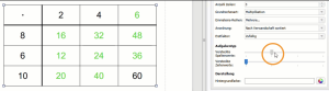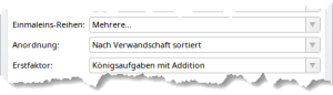 Bei der Multiplikation wählt ihr anstatt des Zahlenraums einfach die gewünschten Einmaleins-Reihen aus. Das ist aber noch nicht alles. Ihr könnt nämlich auch festlegen, ob eure Rechentabelle nur Königsaufgaben abbilden soll. Auch die Reihenfolge der oberen Zahlen könnt ihr noch genauer definieren, und sie beispielsweise anhand ihrer Verwandtschaft sortieren.