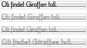Eine Variante für die Schreiblineatur: klassisch, gepunktet, in Kontur und als Pfeilschrift