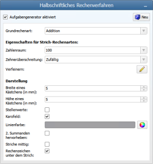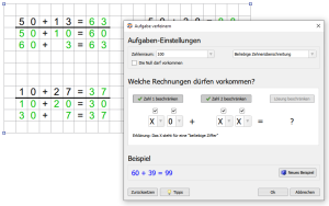 Ist euch im obigen Screenshot gerade der kleine Button bei „Verfeinern“ aufgefallen? Dahinter verstecken sich dieselben umfangreichen Verfeinerungsmöglichkeiten, die ihr auch schon von den Rechenpäckchen kennt. So könnt Aufgaben zum halbschriftlichen Rechenverfahren ganz flexibel und schnell differenzieren: