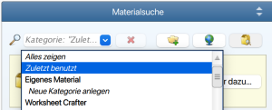 Ihr wollt Bilder und Sounds, die ihr gerade schon für ein anderes Arbeitsblatt verwendet habt, nun auch für das nächste nutzen? Dabei unterstützen wir euch ab sofort mit der neuen Kategorie Zuletzt benutzt. Im DropDown-Menü der Materialsuche findet ihr unter dieser neuen Kategorie ganz schnell Bilder und Sounds wieder, die ihr seit dem letzten Programmstart verwendet habt.