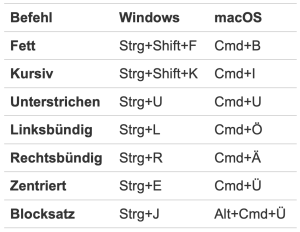 Um euch die Textformatierungen fett, kursiv und unterstrichen zu erleichtern, können sie nun per Tastenkürzel umgeschaltet werden. Gleiches gilt für die Ausrichtung des Texts linksbündig, rechtsbündig, zentriert oder im Blocksatz.