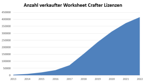 Auch im Jahr 2022 hat sich für uns die wundersame Reise fortgesetzt. Wir haben inzwischen 414.000 Lizenzen des Worksheet Crafter verkauft. Der Trend, dass wir zunehmend mehr Anfragen von Schulträgern wie Städten und Landkreisen erhalten, hat sich dabei fortgesetzt: