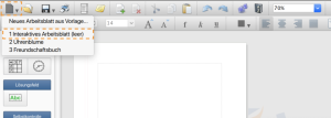 Und jetzt kommt der Trick! Wenn ihr nun die Vorlage für euer interaktives Arbeitsblatt verwendet und anschließend auf das Icon für neues Arbeitsblatt klickst (Tastaturkürzel: Windows: STRG + N oder für den Mac: CMD + N), öffnet sich nun wieder ein konventionelles Arbeitsblatt, ohne dass ihr erst den Umweg über "Seite einrichten" machen müsst. Über dieses Icon habt ihr auch schnellen Zugriff auf die zuletzt benutzten Vorlagen. Ein Klick auf den Ausfaltpfeil und ein weiterer Klick auf die entsprechende Vorlage lädt wieder eure interaktive Vorlage.
