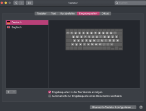 Fügt über das Pluszeichen unten links die gewünschte Tastatursprache hinzu.
