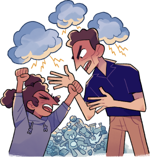 Annas Geschichte demonstriert, dass es manchmal auch darum geht, wie jemand seine Erwartungen ausdrückt. Eigentlich hatte sie sich nämlich fest vorgenommen, ihr Zimmer aufzuräumen. Doch als ihr Papa es ihr befiehlt, platzt Anna der Kragen. Sie will aufräumen, weil sie es will, nicht weil Papa es will. Gut, dass sich ihr Papa da beruhigt und die beiden zusammen überlegen, wie sie das in Zukunft besser machen können. Aufräumen auf Kommando? Anna sagt: Nein, nein, nein!