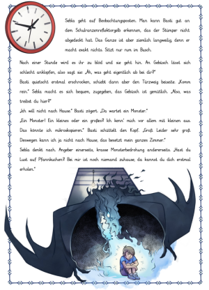 Das Geheimnis des Klassenstars erzählt von Sebla, die Basti eigentlich gar nicht leiden kann. Als sie ihn auf dem Heimweg von der Schule aber traurig in einem Gebüsch entdeckt, wird sie neugierig, was der Klassenstar dort macht. In dem Gespräch erfährt Sebla, dass Basti Angst vor einem Monster hat und lädt ihn zu sich nach Hause ein. Gegen welches Monster Basti kämpft, verraten wir an dieser Stelle aber nicht. Macht es euch doch einfach gemütlich und schmökert in die Geschichte rein. Es lohnt sich, versprochen!