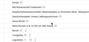 Wir ordnen die Paketwünsche also nach verschiedenen Kriterien und entscheiden uns dann für das Thema, auf das wir gerade am meisten Lust haben. Denn: Es muss uns ja auch Spaß machen, das Paket zu basteln. ;)