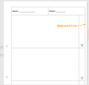 Manchmal benötigt ihr den gesamten Platz eines Arbeitsblatts eigentlich für eure Aufgaben. Trotzdem wollt ihr auch noch eine Punktespalte darauf unterbringen. Indem ihr den Blattrand verkleinert, schafft ihr mehr Platz auf eurem Material.