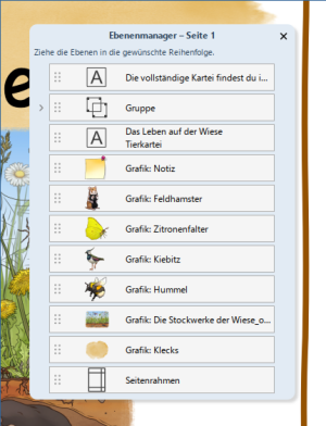 Grundlage für die neuen Möglichkeiten bei den Ebenen ist, dass ihr jetzt jedes beliebige Objekt im Worksheet Crafter als Ebene ansteuern könnt. Sobald ihr Objekte wie Felder oder Bilder auf das Blatt zieht, erhalten sie eine Ebene. Diese steuert ihr in der Menüleiste oben an. Ihr schiebt die Elemente dann beliebig nach ganz vorn, eine Ebene nach vorn, eine Ebene nach hinten oder nach ganz hinten. Doch das ist noch nicht alles. Öffnet ihr den Ebenenmanager, seht ihr alle Objekte auf dem Arbeitsblatt in ihrer jeweiligen Ebene. So habt ihr einen guten Überblick und falls euch etwas nicht passt, sortiert ihr einfach mit Drag & Drop um.